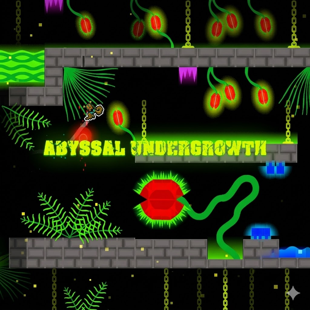 Dashmetry Abyssal Undergrowth is an Insane user-level challenge, where visual complexity and constant transformations push players to their limits. The level’s organic design, filled with reactive plants, shifting terrain, and tight transitions, creates a deceptive rhythm that punishes hesitation. Success depends on precision, memory, and controlled adaptability.